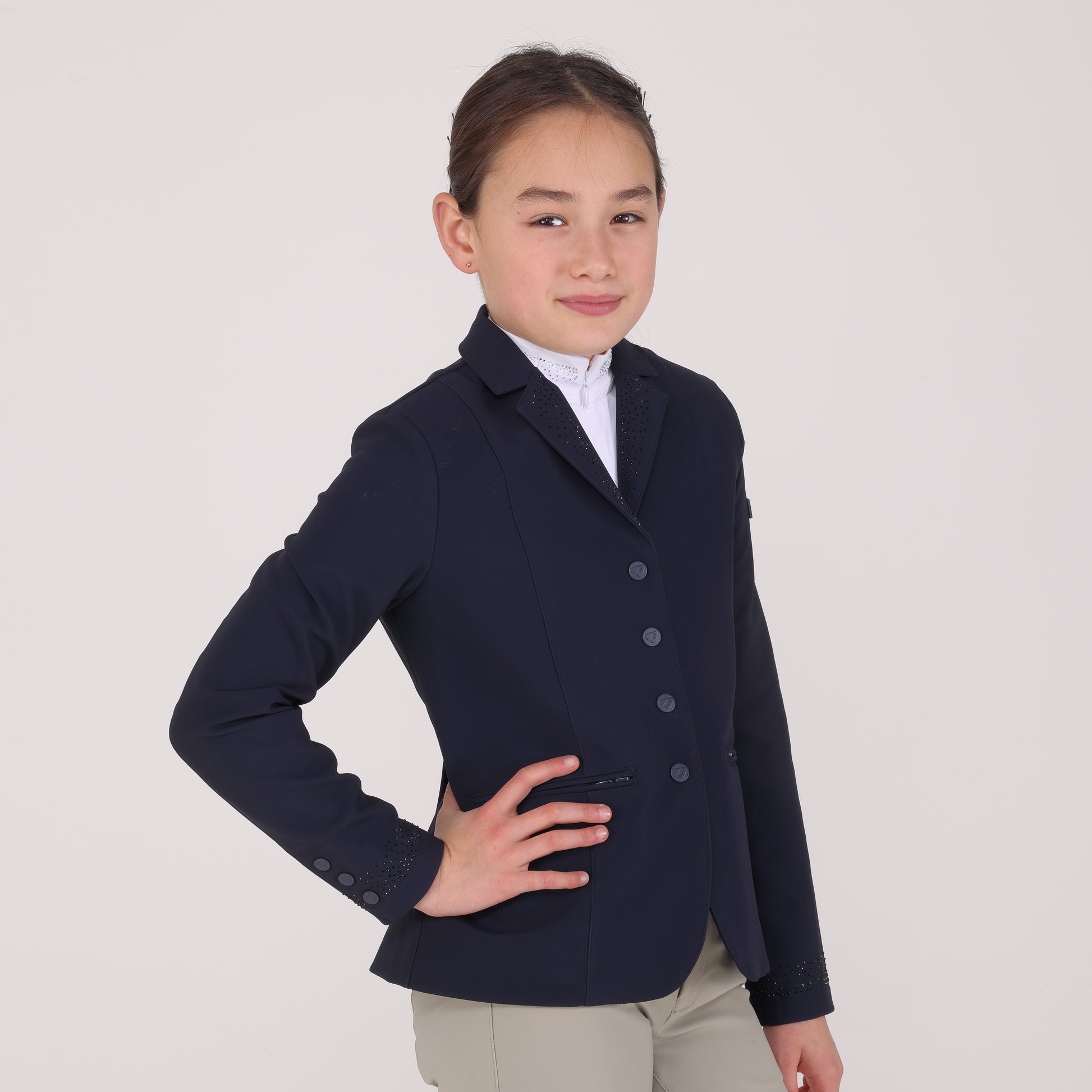 The Aubrion Optima young rider jacket is created for elite competition performance using modern design technology, innovative fabrics, and championship ready styling.