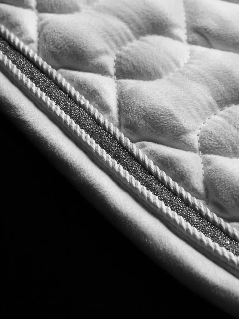 Featuring a luxuriously soft suede top and new sophisticated quilted pattern, the Crystal Suede Dressage Saddle Pad from LeMieux offers a sleek and professional look to your saddle. For an extra special touch, we've finished this pad with stunning sparkle and braided detail trims, creating a beautiful look that's designed to stand out.