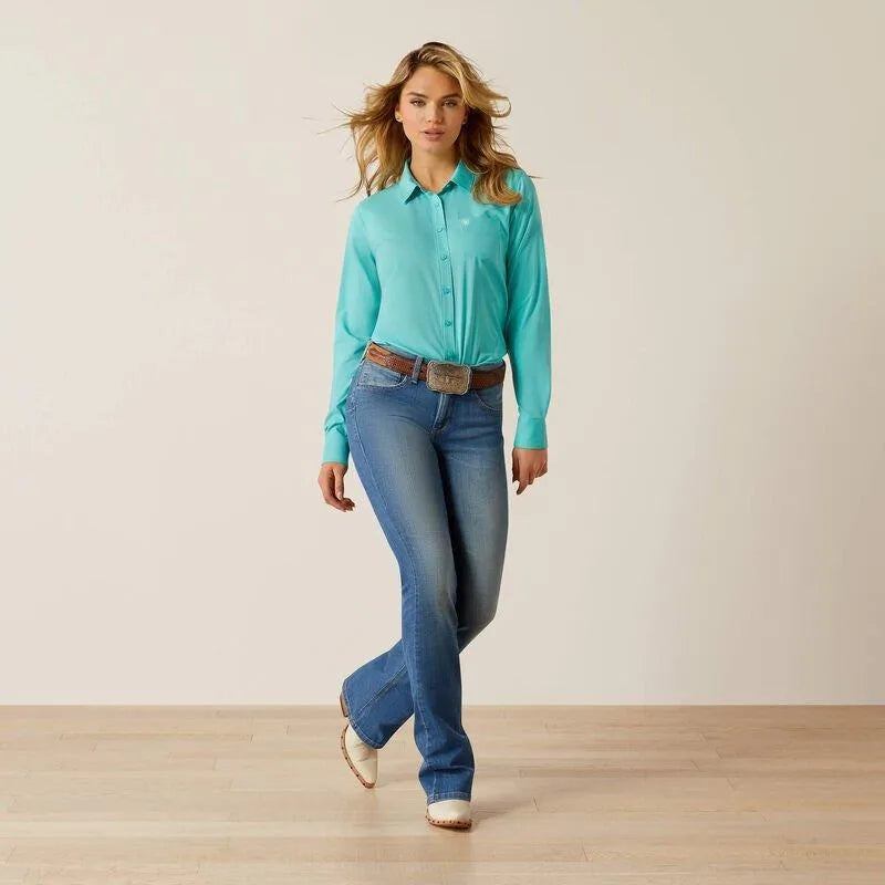 Rep Team Ariat in our athlete-tested, arena-proven shirt. It's engineered with an easy-care performance fabric, which stretches with your every move and looks polished right out of the wash. Add a flattering, saddle-ready fit, and you've got a shirt that can keep up.