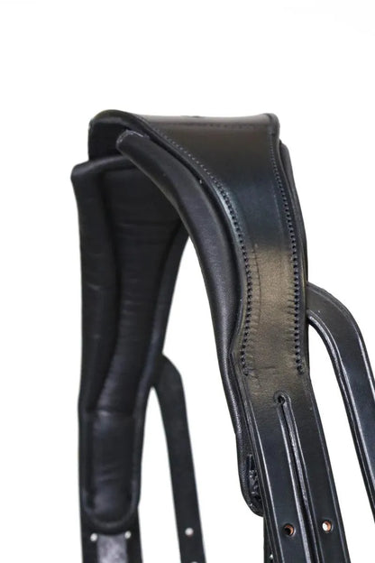 This headpiece benefits from anatomical 4D padding which acts as a buffer at the base of the ear along with a central air gap which avoids contact on the last two vertebra of the neck the padding extends below the browband to offer complete unrestricted comfort.