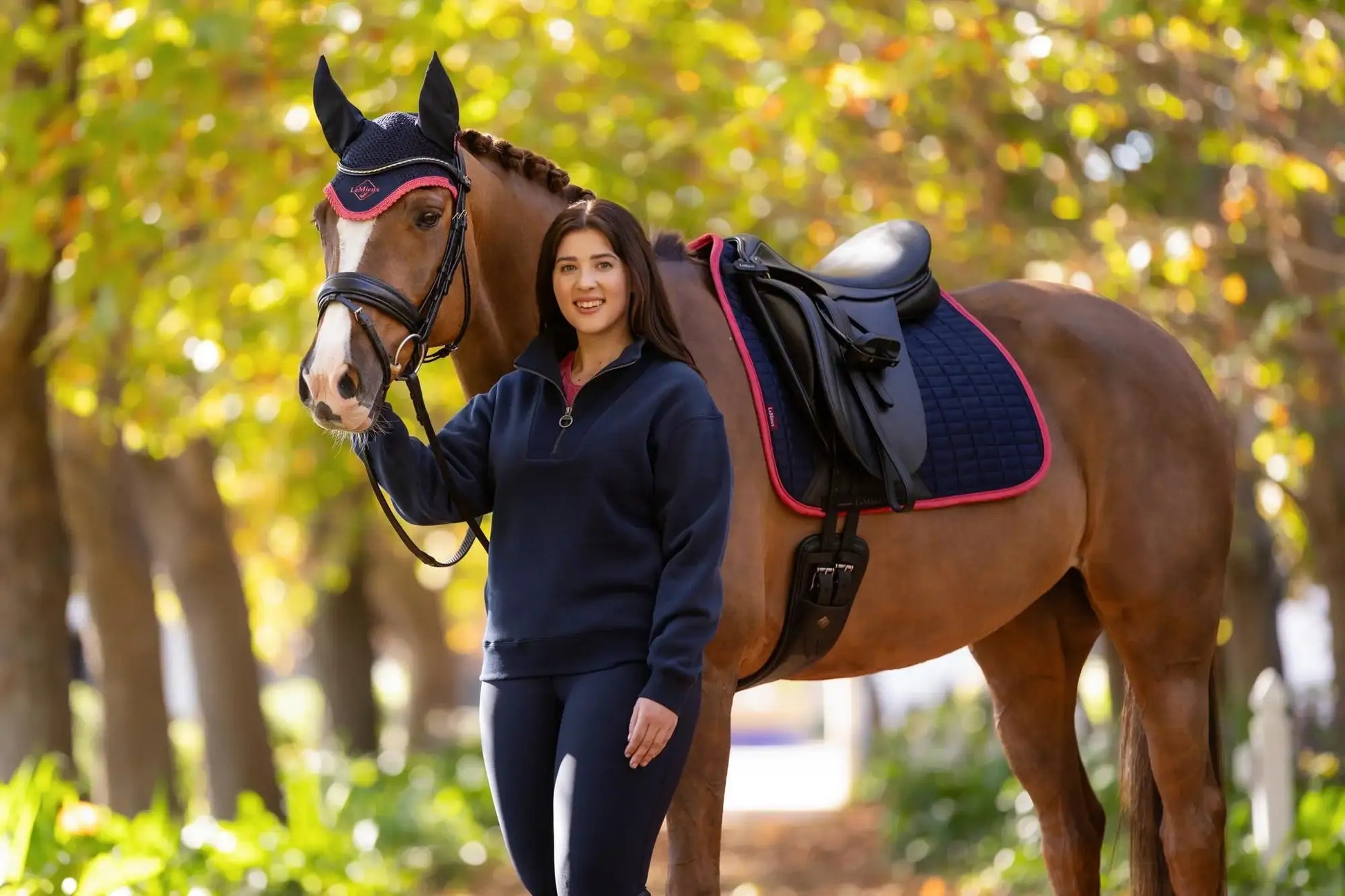 • Relaxed foldover ribbed quarter zip neck with LeMieux embroidery at the back neck