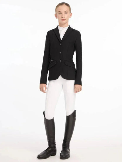 A signature LeMieux premium show jacket, scaled to fit young riders perfectly. Sparkle-free lapels and back belt offer a refined and classic look.