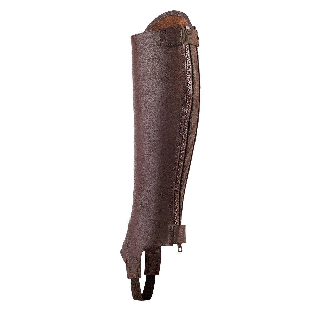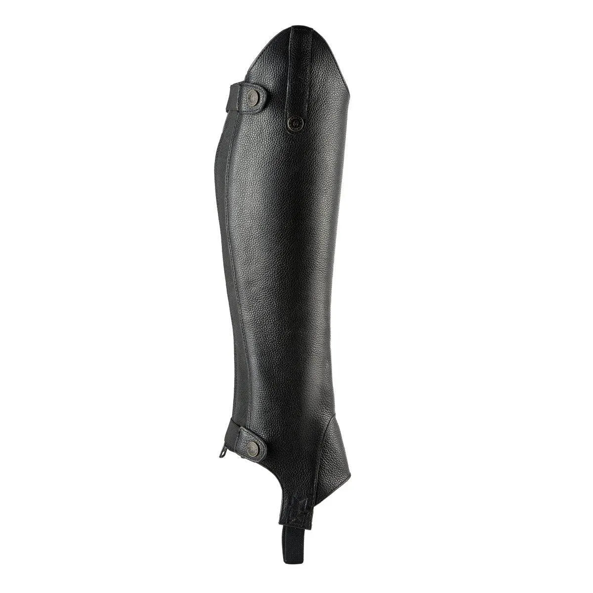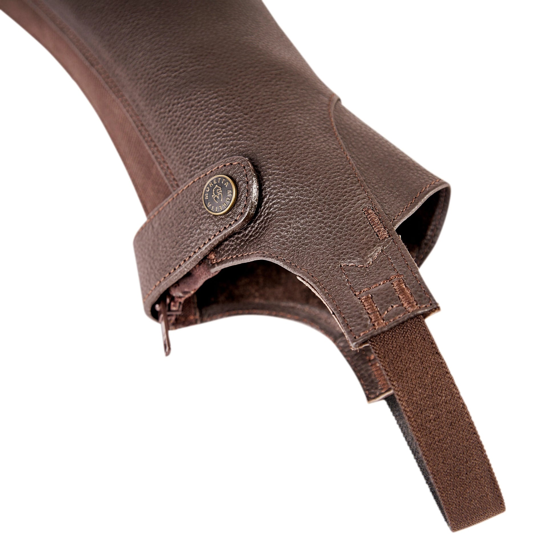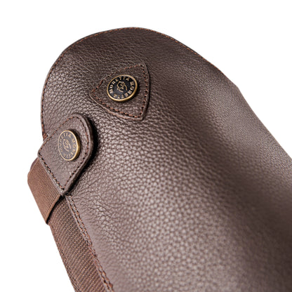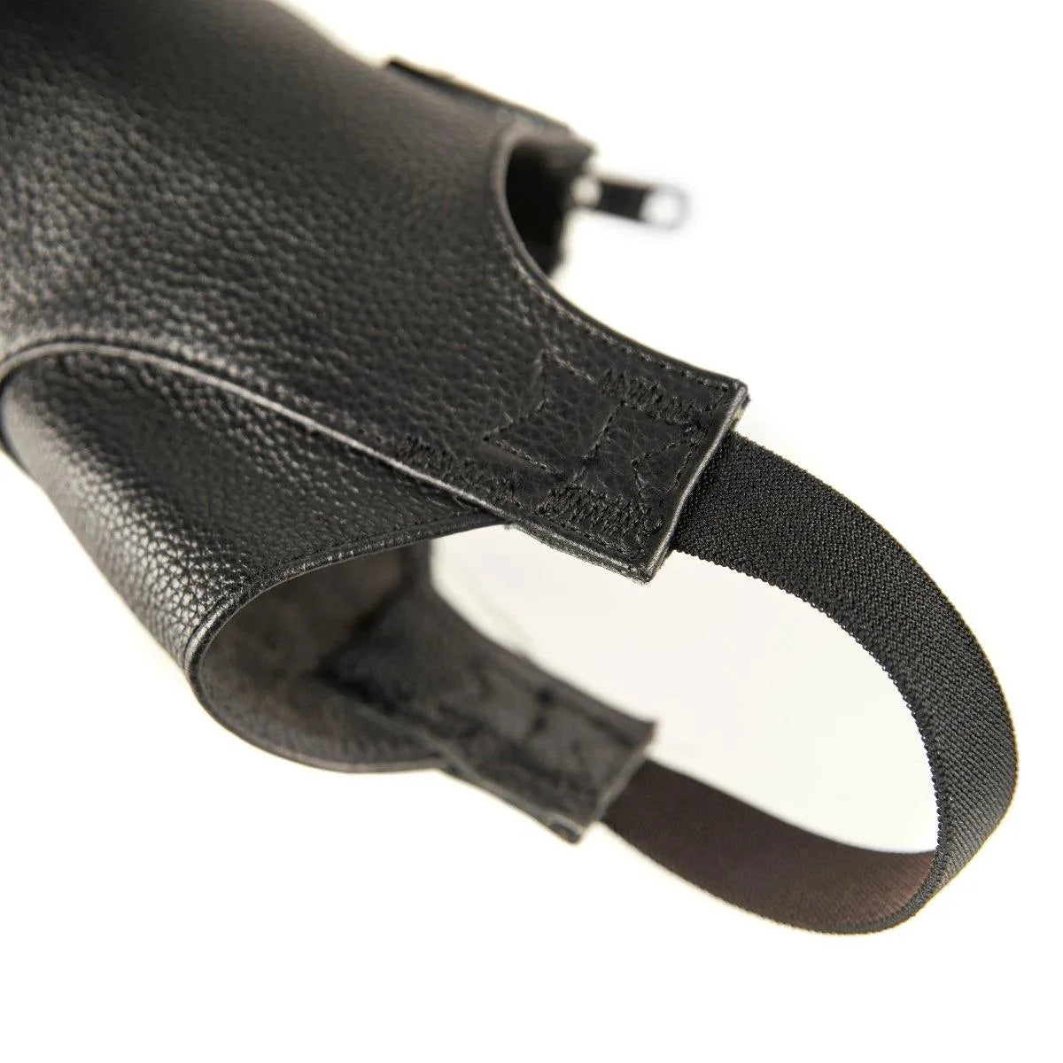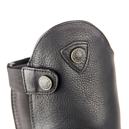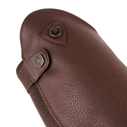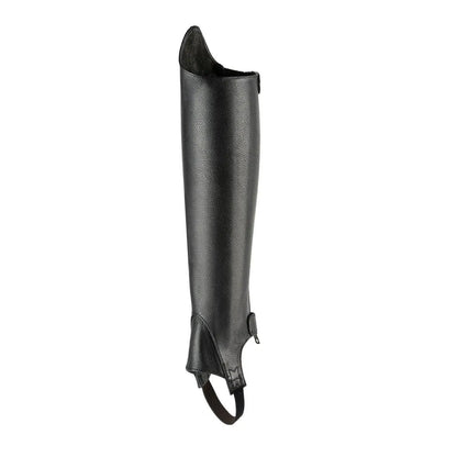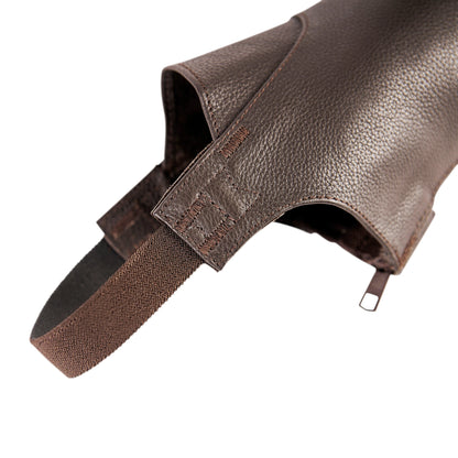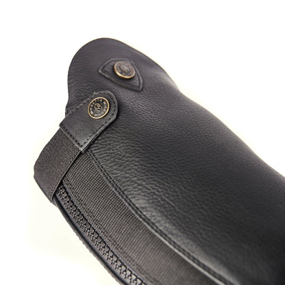 Soft grain leather gaiters to achieve the smart appearance of long riding boots but with the comfort and flexibility of gaiters. Rear elastic calf panels combined with soft leather for a close fit that moulds to the leg, dressage cut tops, full length zips, elastic foot stirrups, stretch zip tidy straps, bound edges.
