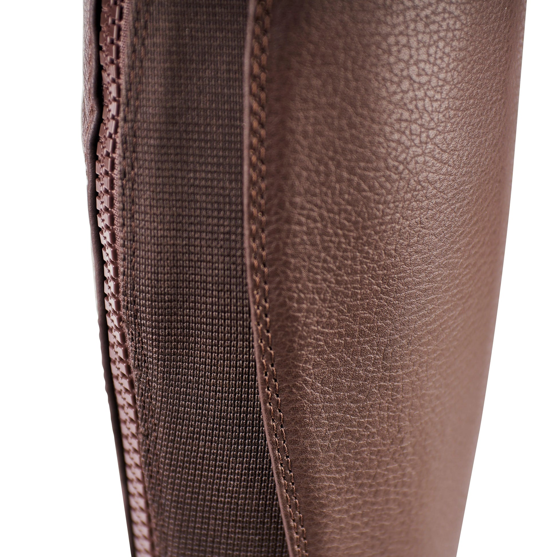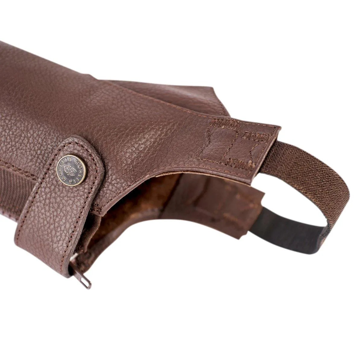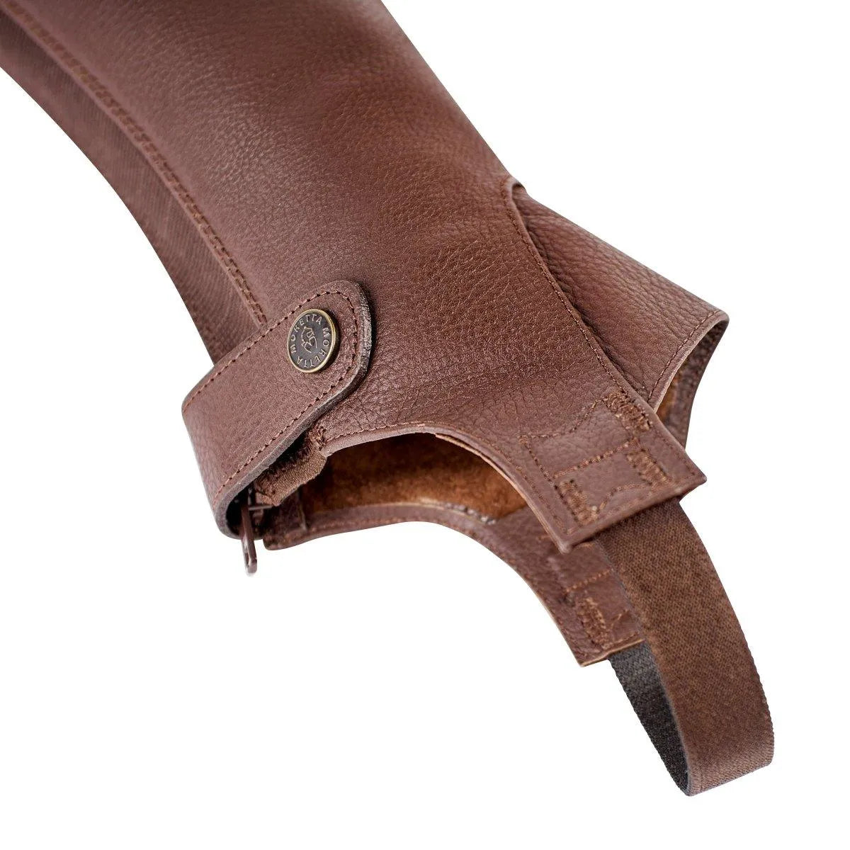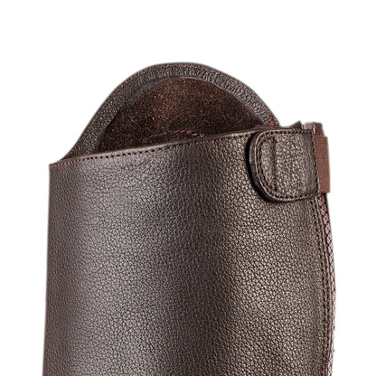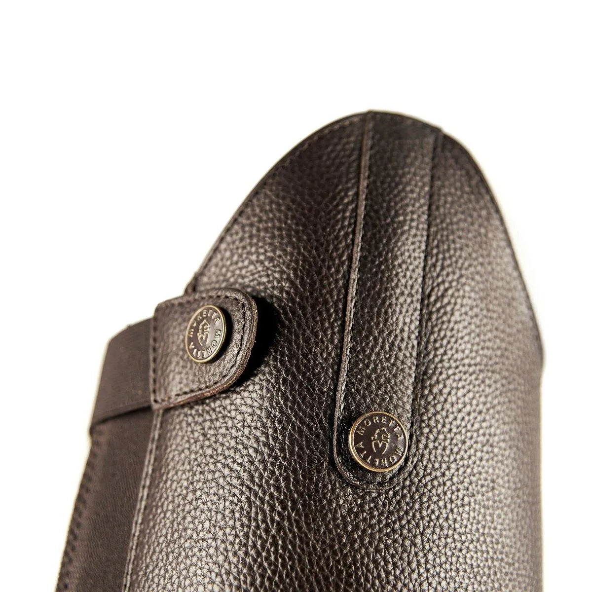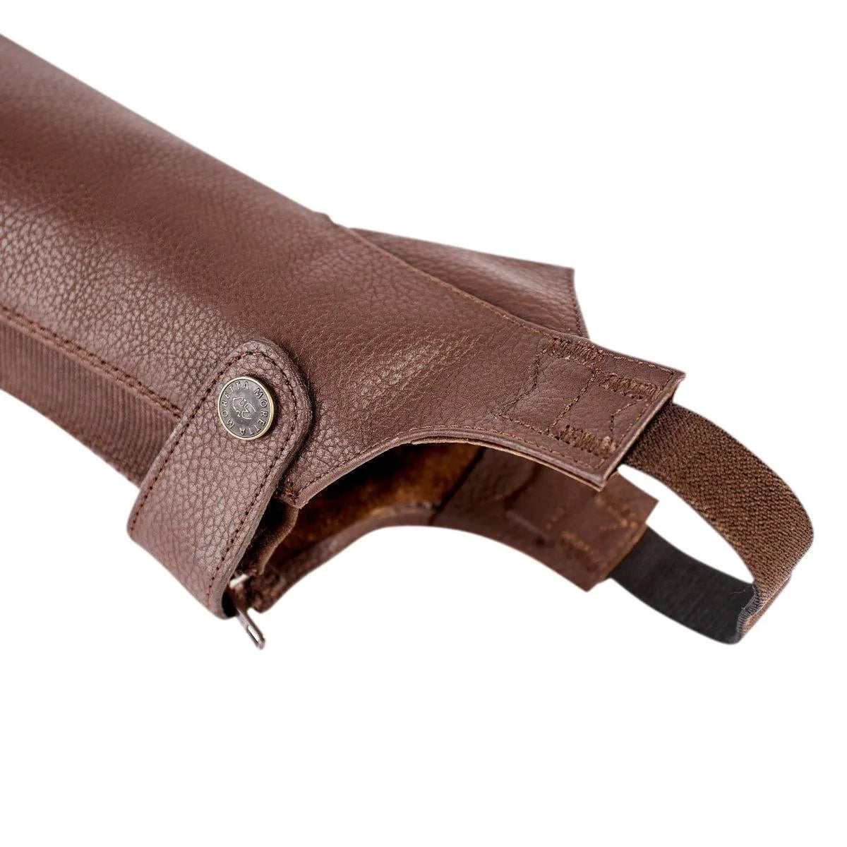 Soft grain leather gaiters to achieve the smart appearance of long riding boots but with the comfort and flexibility of gaiters. Rear elastic calf panels combined with soft leather for a close fit that moulds to the leg, dressage cut tops, full length zips, elastic foot stirrups, stretch zip tidy straps, bound edges.