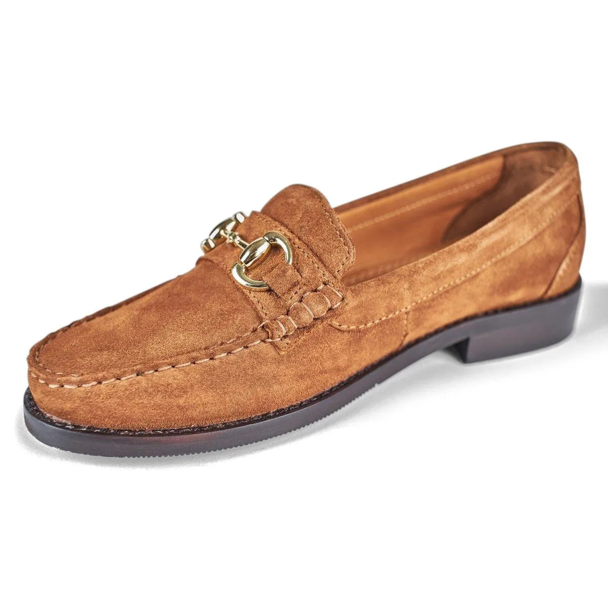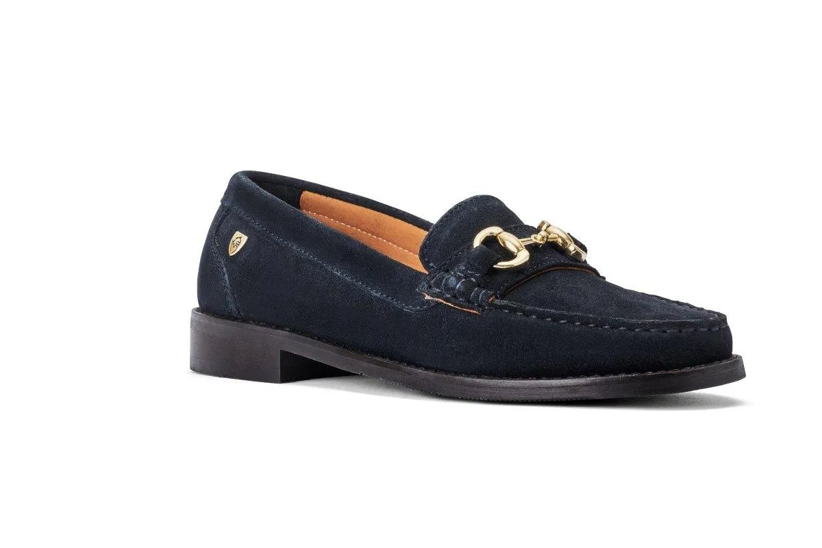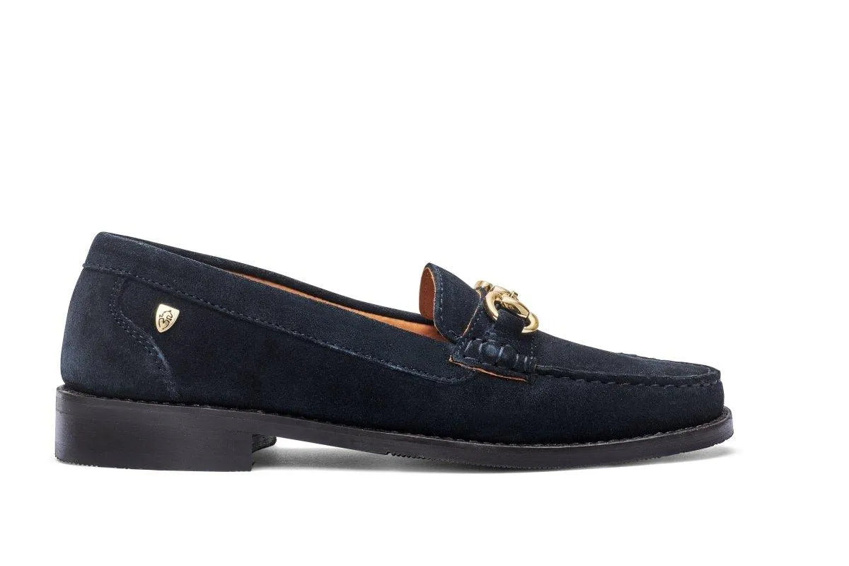 Smart classic Rosa loafers are crafted from soft suede and are luxuriously lined in leather. Italian suede leather. Full leather linings. Gold colour horse bit trims. Leather comfort insoles. Suede heel grips. Premium composite soles. Moretta gold colour stud badge.FAQ